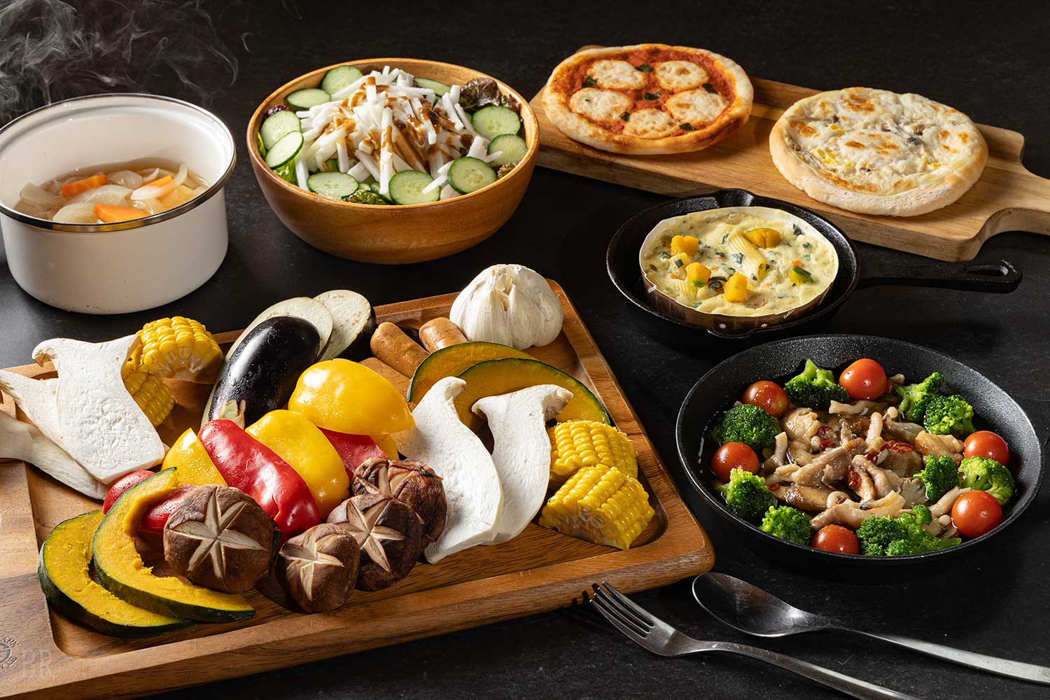 我們提供包含山梨縣產品牌牛、以富士湧水飼養的虹鱒魚等豪華肉品及鮮魚,還有新鮮摘採的當地時令蔬菜等,讓人大飽口福的美味餐點。